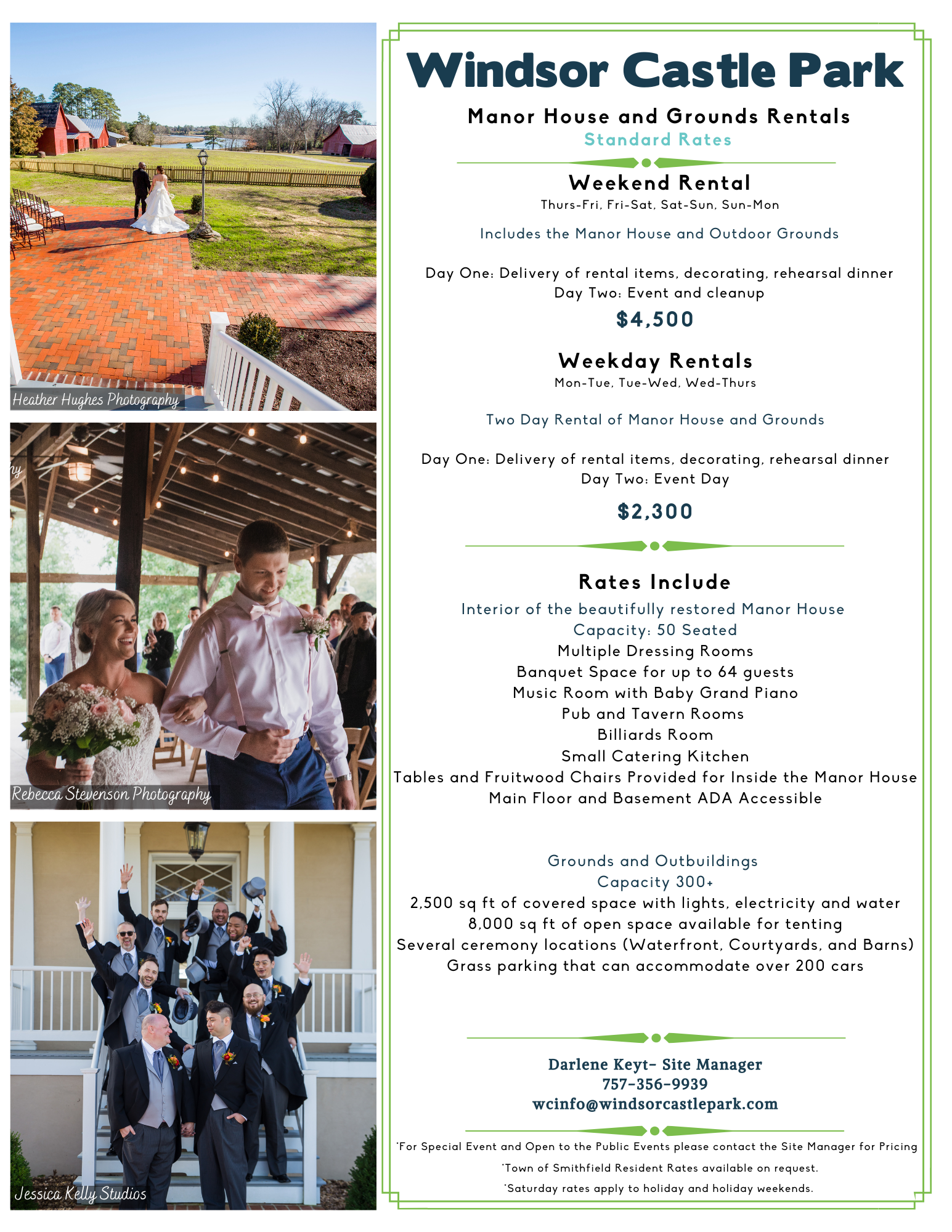 Windsor Castle Park offers a beautiful natural setting with a "touch of the past" for special events. The gorgeous Manor House and grounds sweeping down to the river make a picturesque setting for any celebration. The Manor House at Windsor Castle Park is the perfect place for those looking for a unique venue to host their next meeting or intimate reception. The Manor House Rental is the perfect rental for meetings. receptions or intimate weddings!